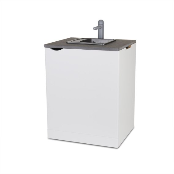 Szafka kuchenna ze zlewem jest częścią modułowej serii wyposażenia kuchni marki Micki i może być używana niezależnie lub w połączeniu z innymi modułami tworząc większą całość. Została zaprojektowana i wyprodukowana w Szwecji z dbałością o wszystkie detale. Wykonana w najwyższej jakości z płyty wiórowej i MDF jest ciekawą propozycją wyposażenia każdej przestrzeni, w której przebywają dzieci.