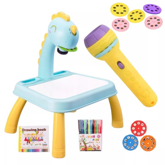 Grający projektor do rysowania z latarką - zestaw do malowania z obrazkami
