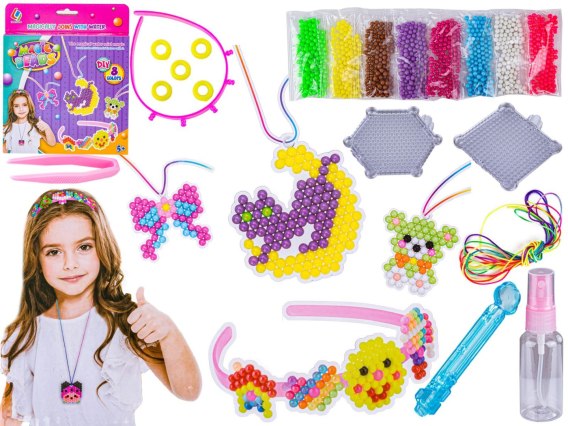 Do uzyskania końcowego efektu nie potrzebujemy żelazka jak w przypadku koralików do zaprasowywania. Wystarczy dołączonym do zestawu spryskiwaczem spryskać koraliki zwykłą wodą.