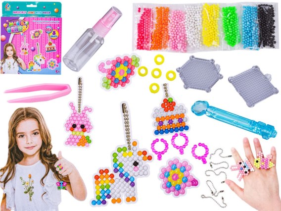 Do uzyskania końcowego efektu nie potrzebujemy żelazka jak w przypadku koralików do zaprasowywania. Wystarczy dołączonym do zestawu spryskiwaczem spryskać koraliki zwykłą wodą.