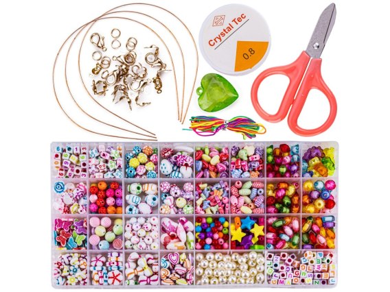 Jest to zabawka do samodzielnego zaprojektowania i zbudowania. Zestaw składa się z wielu kolorowych, plastikowych koralików i pozwala na dowolne budowanie wszystkiego co wymyśli dziecko - bransoletek, naszyjników, zawieszek, przepasek itp. Zabawka, która przemieni dziecko w małego architekta, pobudzi wyobraźnię i pomoże rozwinąć zdolności manualne. Super zestaw zapewni każdemu dziecku mnóstwo wesołej zabawy.