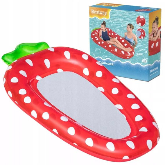 Nadmuchiwany materac świetnie sprawdzi się na wakacjach nad wodą, zarówno nad morzem czy jeziorem, ale także na basenie. Oryginalny kształt truskawki  wyróżnia materac i zachęci dzieci do korzystania z niego. Dno z siatki zapewni wygodę i frajdę, gdyż pomimo przebywania na materacu, można leżeć w orzeźwiającej wodzie. Dwukomorowa konstrukcja i zawór zabezpieczający przed wylotem powietrza, zapewnią bezpieczeństwo dzieciom podczas relaksu i zabawy w wodzie.