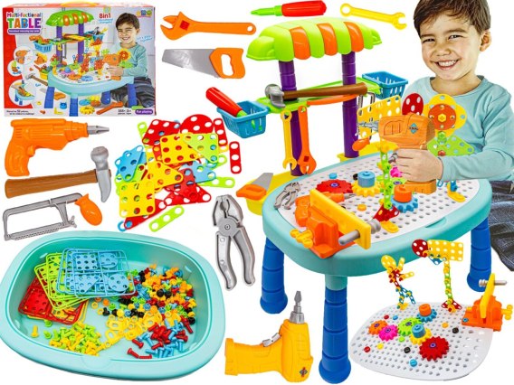Zestaw elementów konstrukcyjnych w zestawie z śrubokrętem i wkrętarką przypadnie do gustu każdemu małemu majsterkowiczowi. Zestaw do mozaiki pozwala tworzyć i kreować obrazki płaskie lub przestrzenne.
