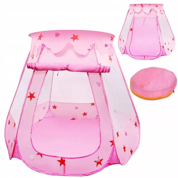 Dziecko od pierwszych chwil zabawy może rozwijać wyobraźnie oraz kreatywność bawiąc się w podróże, wyprawy czy zabawę w dom. Piękna kolorystyka przedstawiająca różowy pałacyk sprawi, że Twoje dziecko chętnie będzie spędzało czas w namiociku. Materiałowy namiot w kształcie domku z motywem gwiazdek i serduszkami to idealny prezent dla każdego dziecka, które lubi spędzać czas w własnym zaciszu lub bawić się w gronie rodziny czy rówieśników.