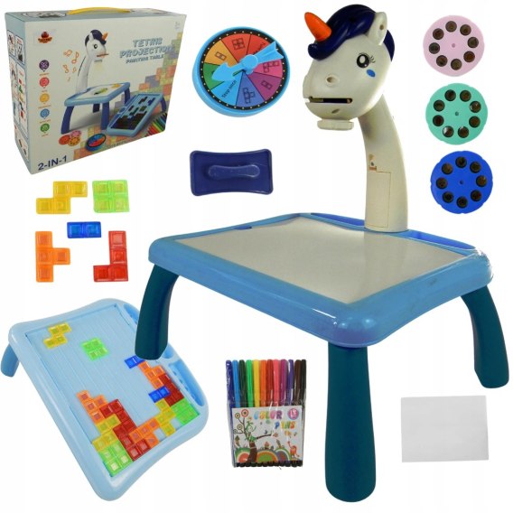 Projektor do rysowania stolik jednorożec tetris niebieski