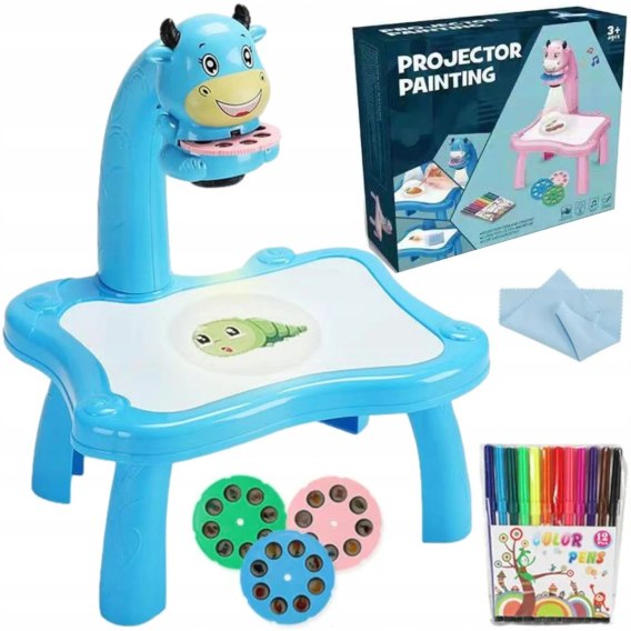 Projektor do nauki rysowania i malowania to świetny sposób na naukę poprzez zabawę dla Twojego dziecka. Już od najmłodszych lat pobudza wyobraźnie, ćwiczy spostrzegawczość oraz pamięć. Edukacyjna zabawka, która rozwinie w dziecku zdolności plastyczne, które zaowocują w dalszej nauce w przedszkolu, a później w szkole. Rzutnik w ładnych kolorach niebieskiego to idealny prezent dla każdego chłopca, który lubi rysować. Buźka krówki dodatkowo zwróci uwagę dziecka, a miły akcent będzie wzbudzał pozytywne skojarzenia z malowaniem!