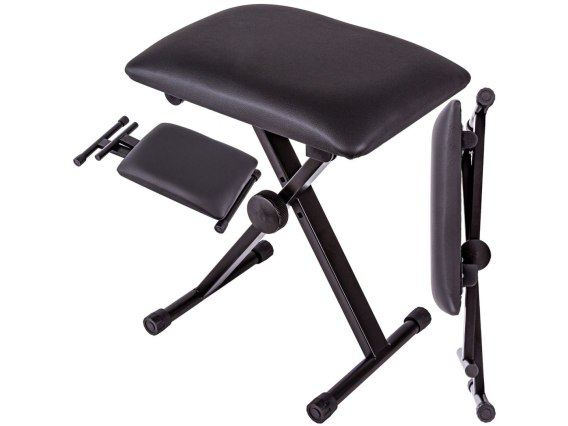 Solidny stołek dzięki porządnej konstrukcji zapewni stabilność podczas gry na keyboardzie w każdych warunkach. Za sprawą regulowanej wysokości jest uniwersalnego zastosowania - zarówno dla mniejszych jak i większych użytkowników. Podstawa posiada przeciwślizgowe końcówki dodatkowo zapewniające stabilizację podczas zabawy. Wygodne siedzisko zapewnia komfort i pozwala w pełni skupić się na tworzonej muzyce.