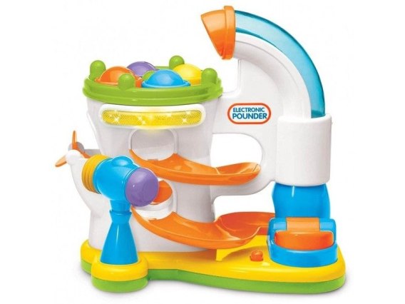 Żywa kolorystyka zabawki oraz efekty dźwiękowe naprawdę angażują w muzyczną zabawę. Fontanna wyposażona została w lekki młoteczek, którym kolejno wbijamy kolorowe piłeczki. Świetny pomysł na ćwiczenie koordynacji wzrokowo-ruchowej.